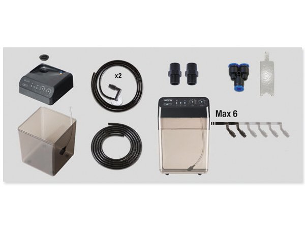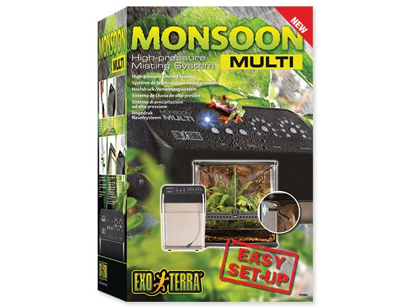 Je dodáván se dvěma snadno připojitelnými tryskami, ale systém může být zvětšen až 6 na trysek, takže je ideální pro více terárií.