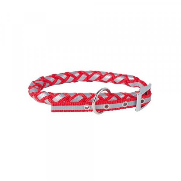 • červené barvy Nylonový reflexní obojek pro psy RED • nylon • se zapletenými reflexními pásky.
