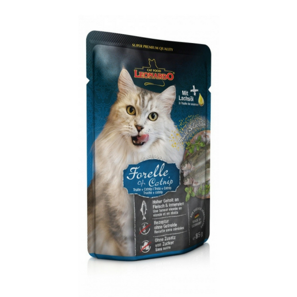 Obsažený lososový olej poskytuje hodnotné Omega 3 nenasycené mastné kyseliny. Taštičky je také možné míchat s granulovanými superprémiovými krmivy Leonardo. - prvotřídní složení v každém balení (85 g) - šetrně vařené šťavnaté maso a suroviny potravinářské kvality - s lososovým olejem, bohaté na Omega 3 nenasycené mastné kyseliny - velmi vhodné i pro citlivé a mlsné kočky - bez umělých barviv, ochucovadel a konzervantů