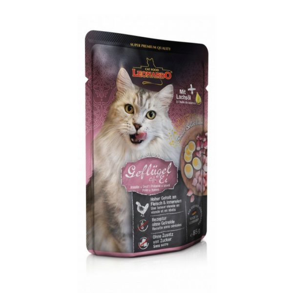 Doporučené dávkování: 2 - 3 taštičky denně pro dospělé kočky s průměrnou hmotností 4 kg. Doporučujeme kombinovat s granulovanými krmivy Leonardo (20 g granulí zhruba odpovídá 1 taštičce). Kočka by měla mít celodenní přístup k čerstvé pitné vodě. Po otevření skladujte v ledničce a spotřebujte do 24 hodin.