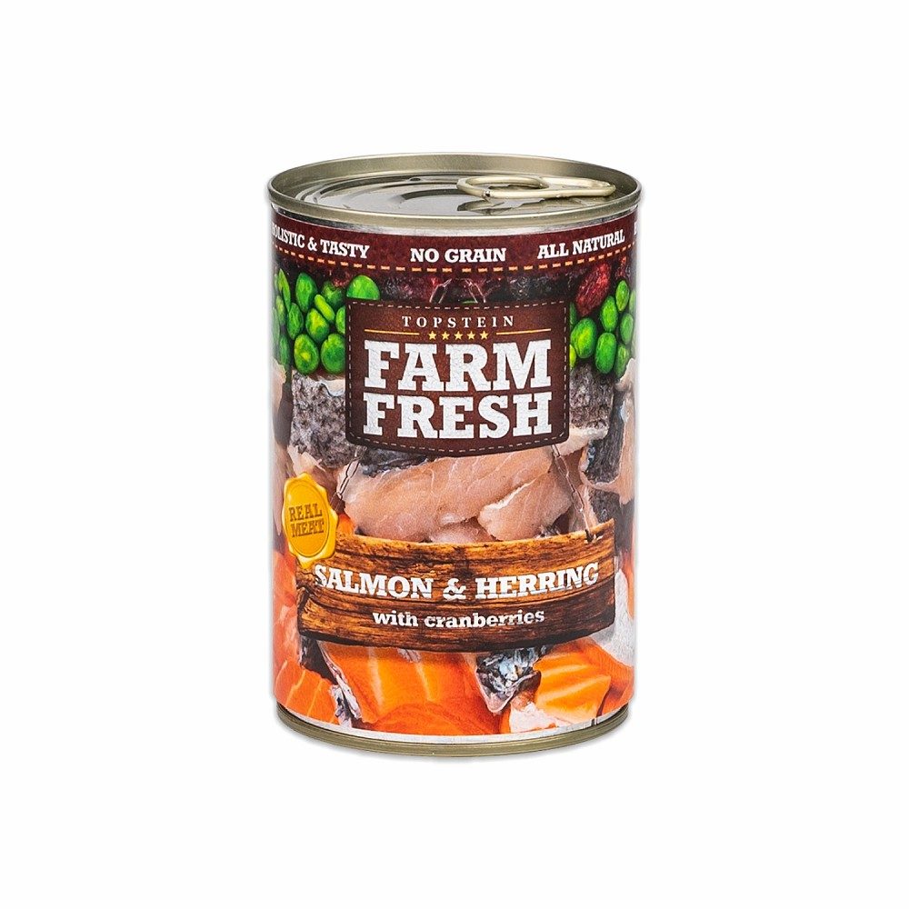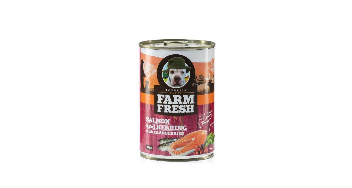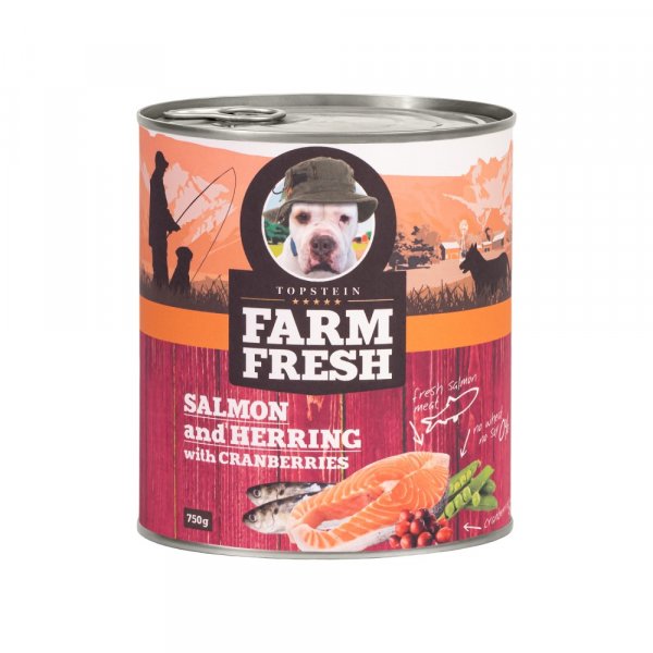 Vysoce kvalitní lososové maso s hráškem a brusinkami.