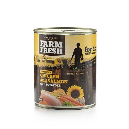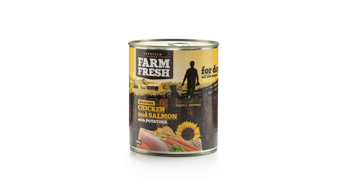 Složení: kuře, losos a vedlejší prod. z kuřete a lososa, brambory, mrkev, hrášek, minerální látky, slunečnicový olej