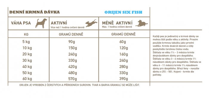 ORIJEN SIX FISH je bezkonkurenční díky svému obsahu ryb lovených v chladných vodách kanadského severního Pacifiku, které jsou nám dodávány čerstvé a celé, takže překypují živinami a skvělou chutí. Připravována exkluzivně v našich vítězně oceňovaných kuchyních NorthStar® zaručí krmiva ORIJEN, že váš pes bude zdravý, spokojený a silný. Přečtěte si naše složení a myslíme, že budete souhlasit.