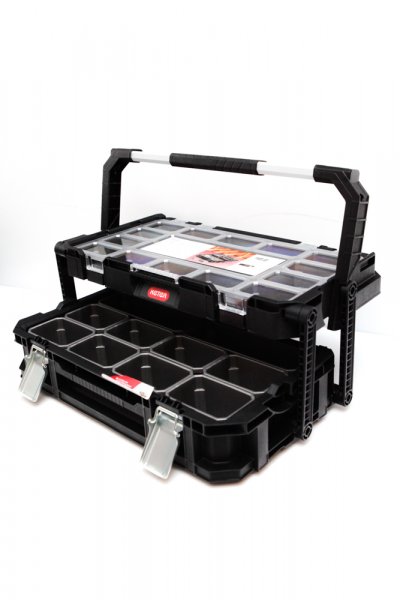 Praktický organizér Smart Cantilever s velkým objemem. Jeho vnitřek umožňuje skladování nářadí různých velikostí. Organizéry uvnitř skříňky usnadňují organizaci práce a zajišťují snadný přístup k potřebnému nářadí. Díky pohodlnému držadlu lze skříňku bez problému přenášet. Velikost 56,5x31,7x16,1cm.
