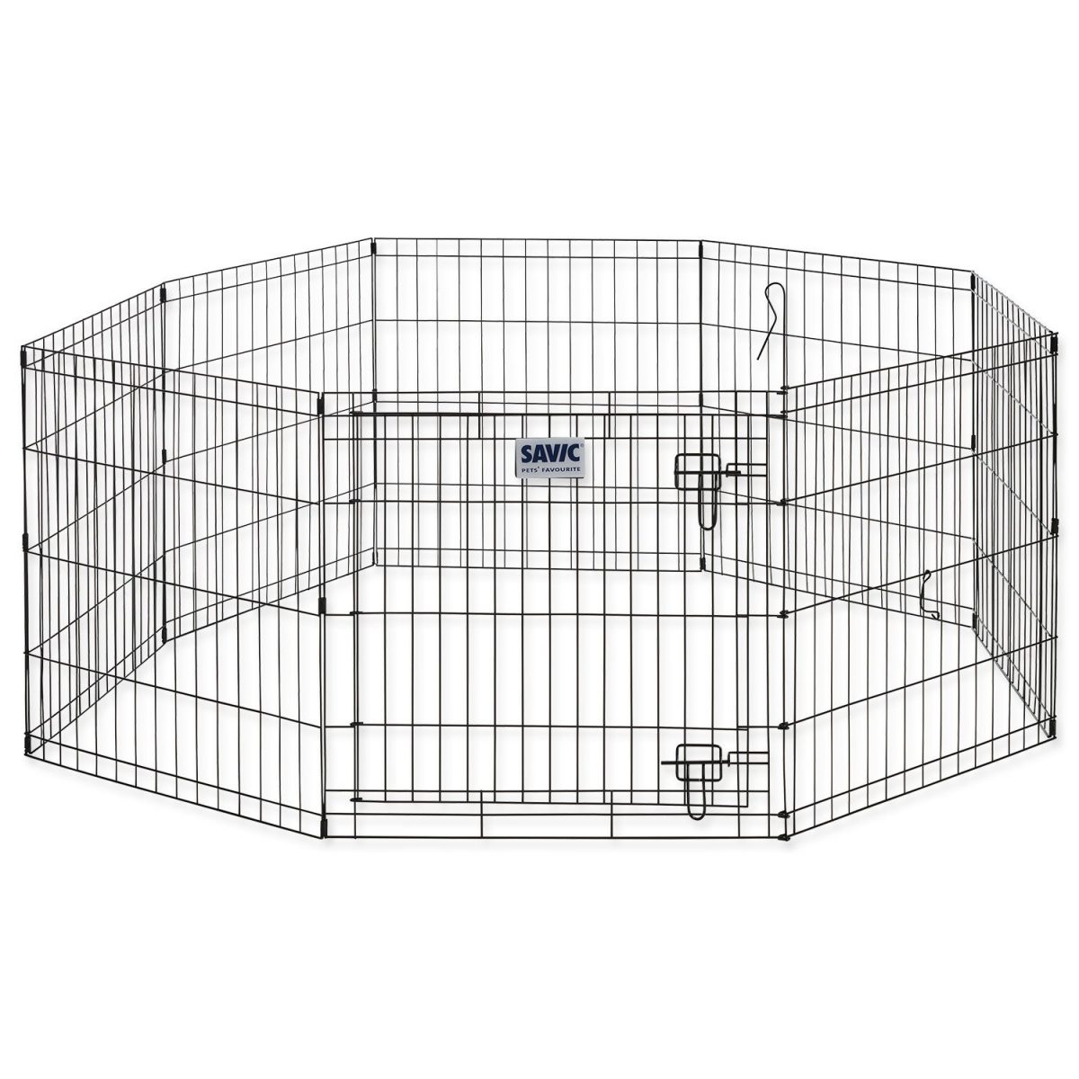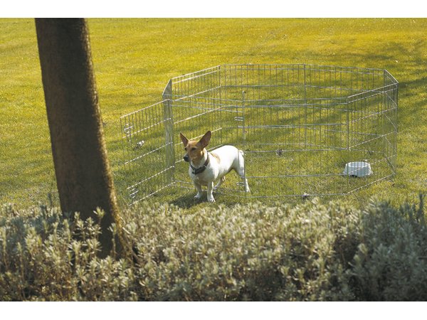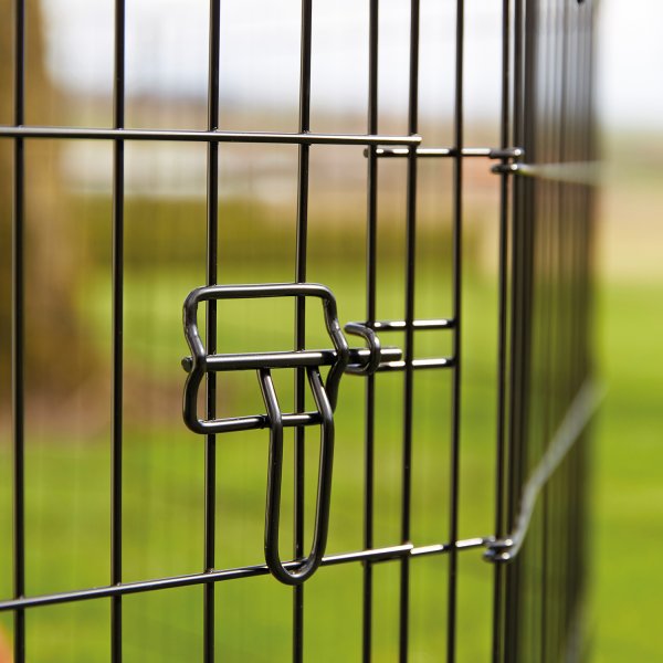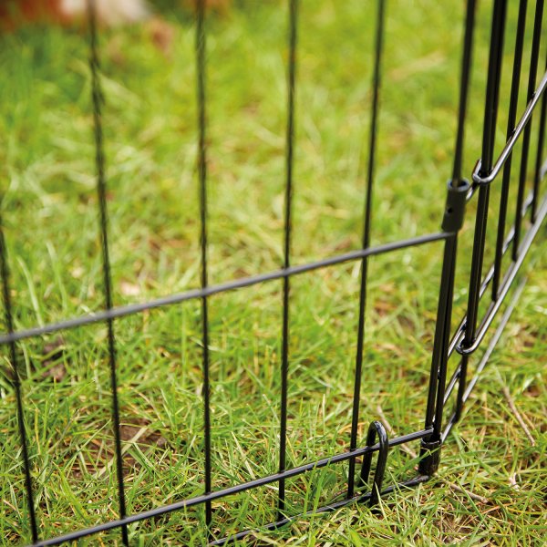 Kovová ohrádka z 8 dílů s dvířky.