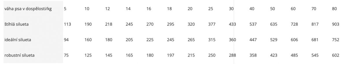 Můžete krmit suchými granulemi nebo namočenými v teplé vodě. Dávka může být rozdílná s ohledem na potřeby jednotlivých psů. Vždy zajistěte čerstvou vodu.