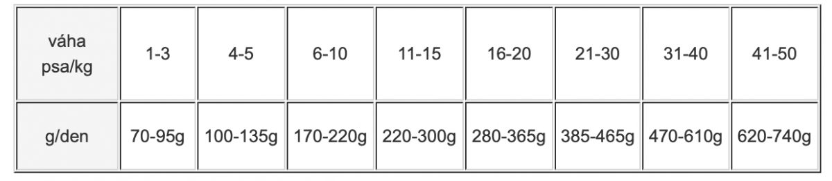 Můžete krmit suchými granulemi nebo namočenými v teplé vodě. Dávka může být rozdílná s ohledem na potřeby jednotlivých psů. Vždy zajistěte čerstvou vodu.