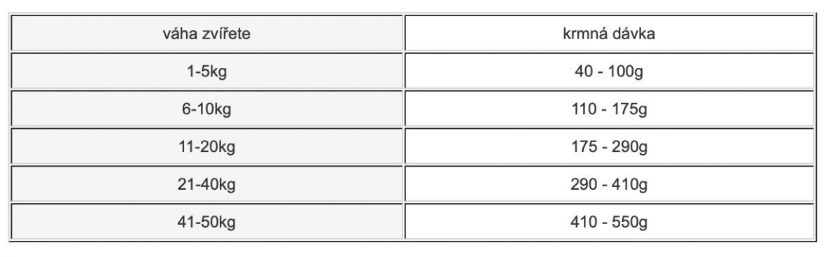 Podávejte suché, jednou nebo dvakrát denně. Denní dávka je přibližná dle tabulky dávkování.Množství podávaného krmiva závisí na aktivitě a rase psa. Zajistěte vždy dostatek čerstvé vody. Skladujte v suchu a chladu.