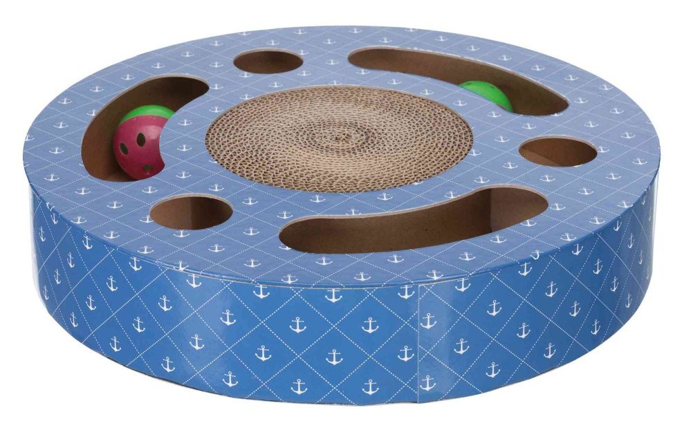 Škrabací bubínek se dvěma míčky je vyroben z lepenkového papíru.