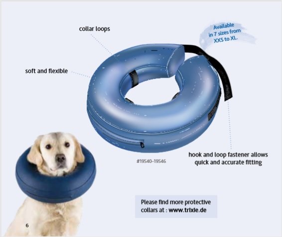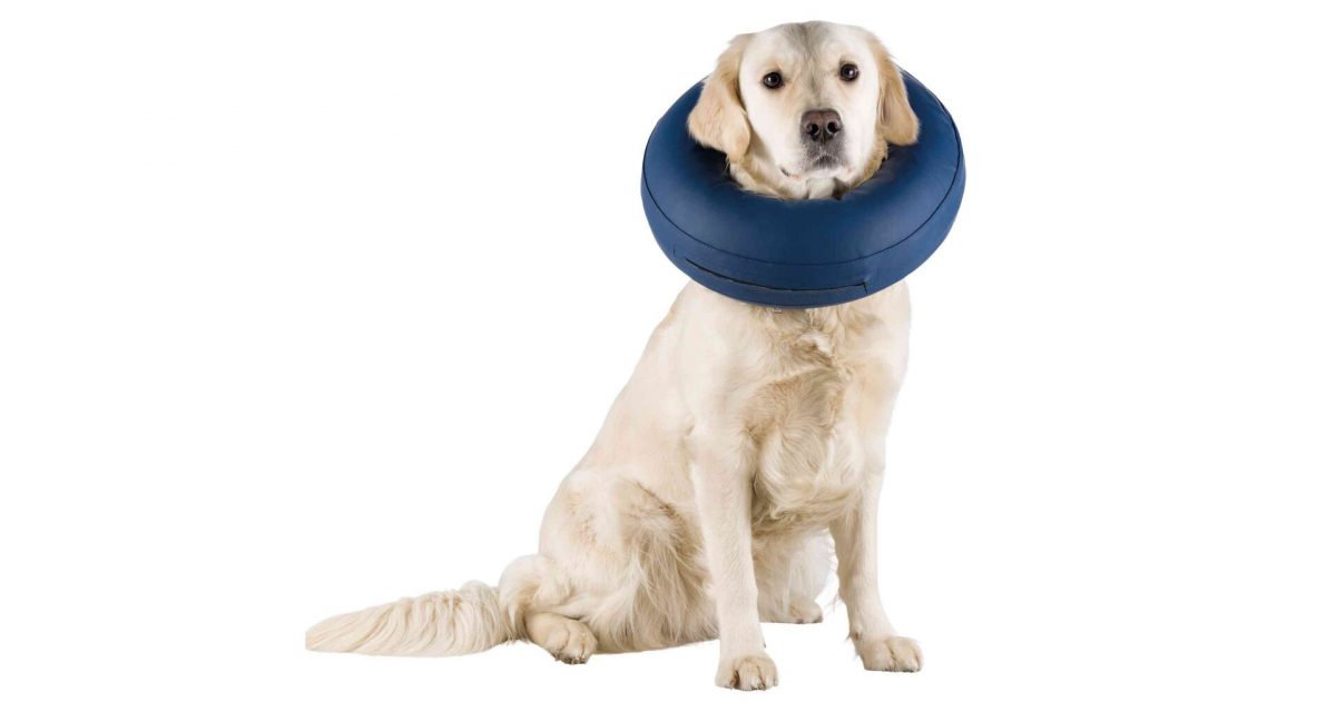Ochranný nafukovací límec zabraňující lízání a kousání ran.