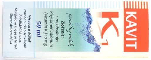 KAVIT K1 je vodný roztok solubilizovaného vitamínu K1, který je důležitým prvkem v biosyntéze faktorů srážení krve. Nedostatek vitamínu K se může projevit poruchami srážlivosti krve a krvácením, také po současném užívaní některých antibiotik se sulfonamidy. Je jediný ze skupiny vitamínů K, který se tvoří v rostlinných pletivech, konkrétně v zelených listech a představuje nejdůležitější dietetický zdroj tohoto vitamínu.