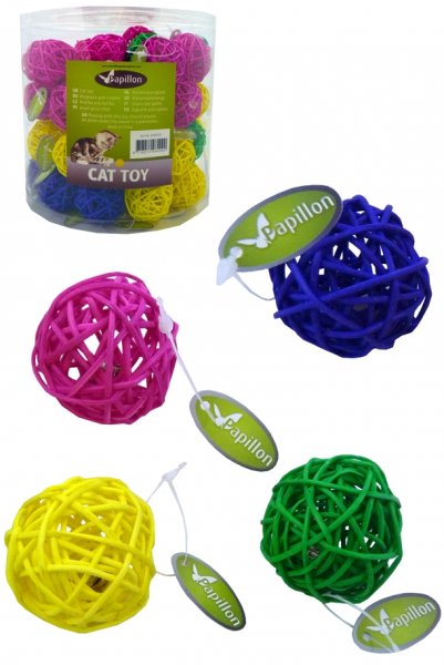 Hračka pro kočku z pediku upletená kulička je lehká a při pohybu náhodně mění dráhu. Střed hračky je dutý a skrývá malou rolničku aby pohybující se hračku doprovázel i zvuk.