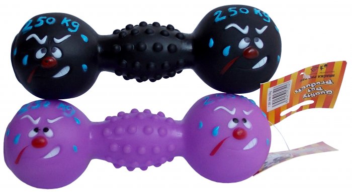 Vinylová pískací činka, 19 cm, různé barvy / vzory.
