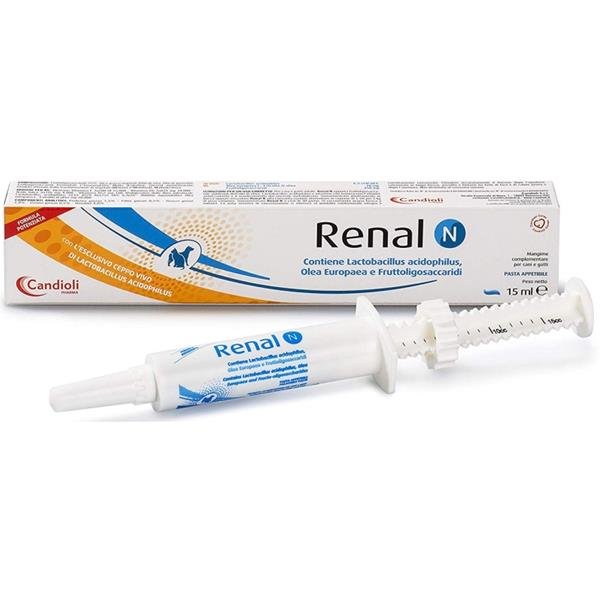 Renal N paste poskytuje frukto-oligosacharidy, polyfenoly olivového oleje, Enterococcus faecium a vitamíny, podporuje zachování normálního metabolismu a správné trávení a střevní funkce.