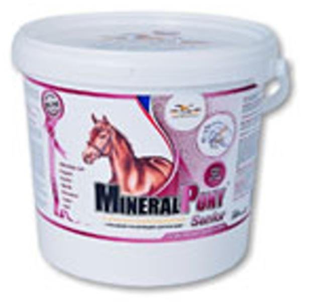 Minerální doplňkové krmivo s obsahem kolagenu CHP, základních minerálních látek, vitamínu E, selenu, vitamínu C, jódu a beta-karotenu určené pro výživu kostí a kloubů dospělých koní v zátěži. Mineralpony Senior zajišťuje současné podávání kostních minerálů a kolagenních peptidů.