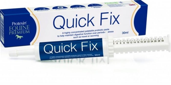 Doplňkové krmivo pro hříbata i dospělé koně Protexin Quick Fix - chutná pasta s vysokou koncentrací probatik a prebiotik pro udržení zdraví trávicího traktu v situacích zvýšeného stresu.