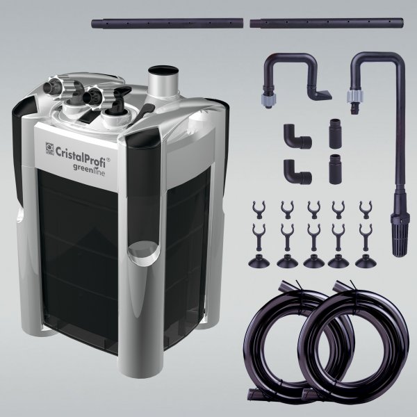 Balení obsahuje: Vnější filtr do akvárií, CristalProfi e701greenline, vč. hadic, 12/16 trubek, nasáv. koše, úhelníku, přísavek, filtrační hmoty (biofiltr. kuličky a biofiltr. pěnová hmota), rozměry (d/v/š): 180 x 210 x 350 mm