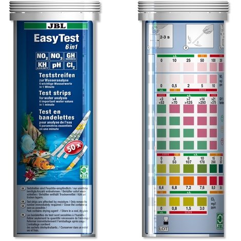 Správné hodnoty vody v akváriu závisí na vysazených rybách a rostlinách. I když voda vypadá čistě, může být zatížena škodlivými látkami. Při špatných hodnotách se mohou v akváriu objevit nemoci či řasy. Pro zdravé akvárium s přírodními podmínkami je nutná pravidelná kontrola hodnot vody. Pro orientační test slouží testové proužky JBL.