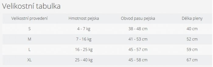 Každé balení zobrazuje jasný diagram velikostí. Pokud je celková hmotnost nebo rozměry psa na rozhraní dvou velikostí, vyberte si větší velikost.