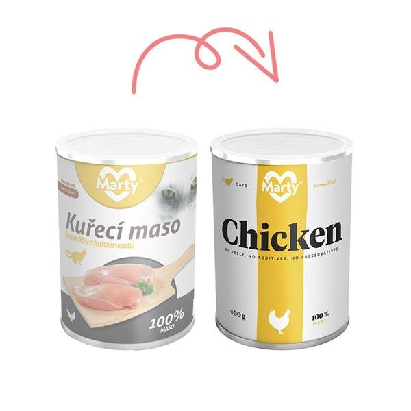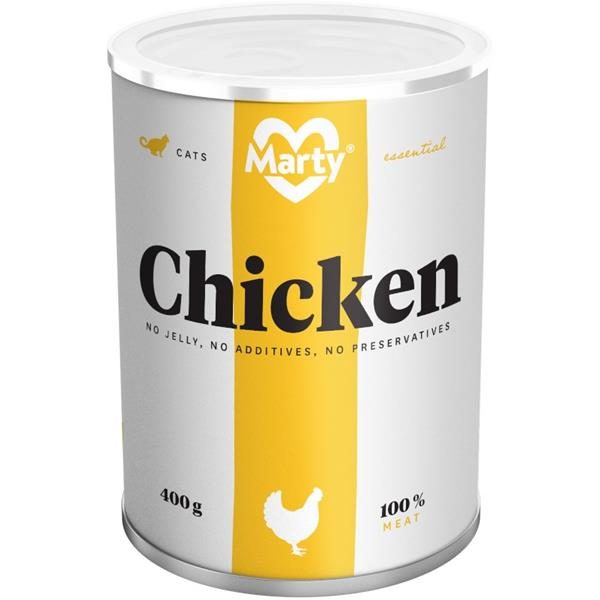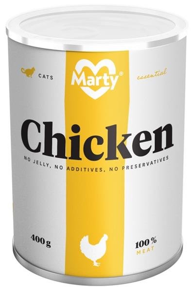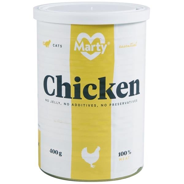 MARTY konzerva pro kočky ze 100% masa se vyznačuje stoprocentní živočišnou složkou bez obsahu rýže, sóji, brambor, ale ani přidaných konzervantů. Obsah konzervy je složen ze 100 % mletého masa obsahující dominantně složku masa uvedeného v názvu. Toto krmivo tak respektuje přírodu a Vašeho masožravého miláčka umožňuje krmit opravdu masem!