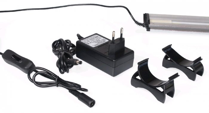 Obsah balení: osvětlovací rampa, měnič, stojánek