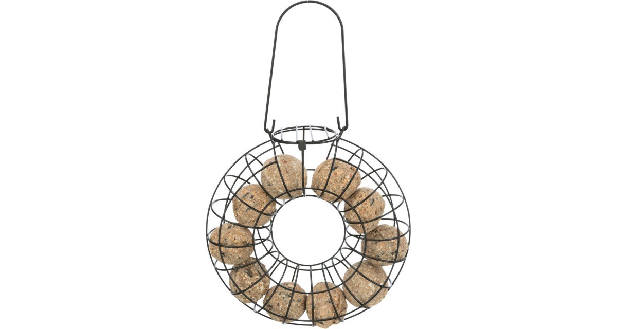 Krmítko na zavěšení lojových koulí. - materiál: lakovaný kov