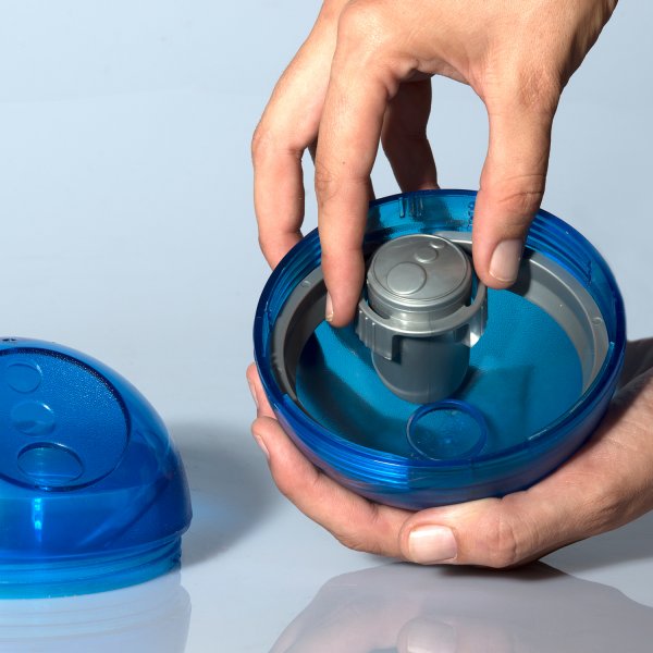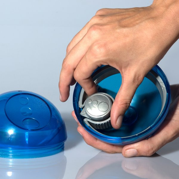 Možnost nastavení zátěže do tří různých poloh dle velikosti a kondice psa. Čím dále je závaží od otvoru, tím větší sílu musí pes pro získání potravy vyvinout.