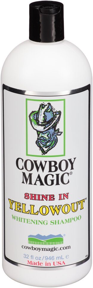 Šampon Cowboy Magic Shine in Yellowout™ eliminuje žluté skvrny a zvýrazní sytost srsti jakékoli barvy - černá, bílá, kaštanová, rezavá, palominová.