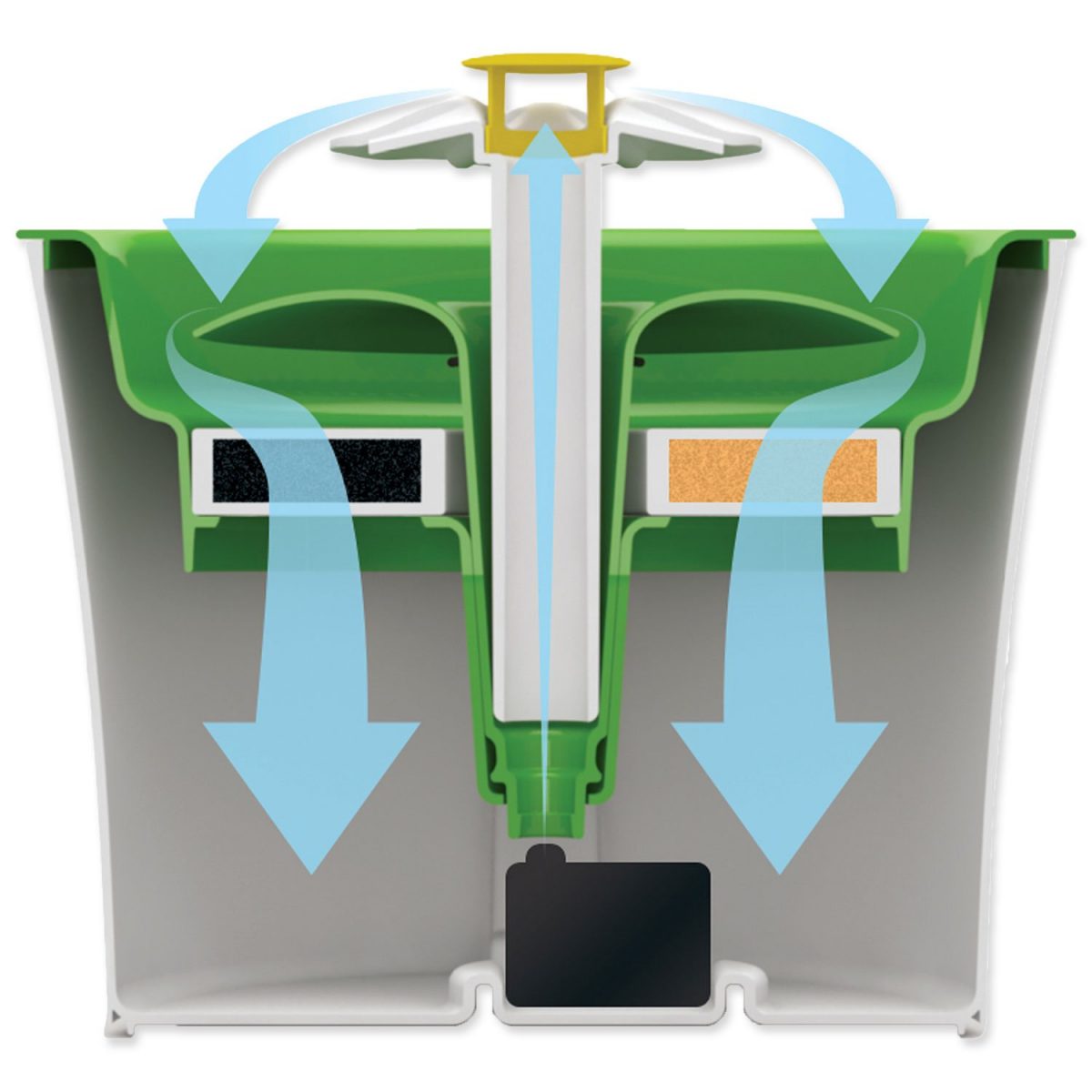 Zahrnuje filtr na změkčování vody a malé energeticky účinné čerpadlo.