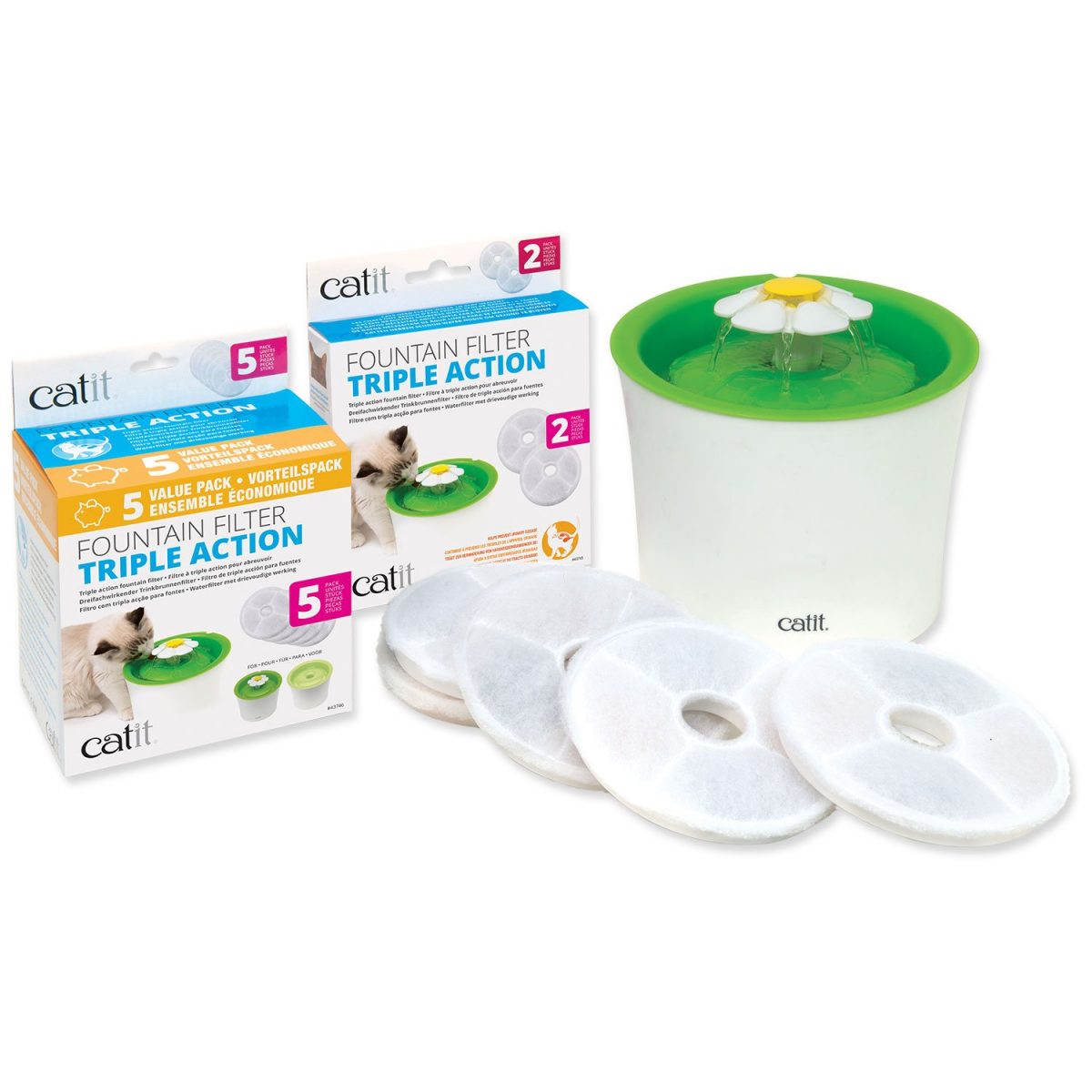 Květinová fontána s 3 litrovým obsahem pitné vody a tříplošným filtrem.