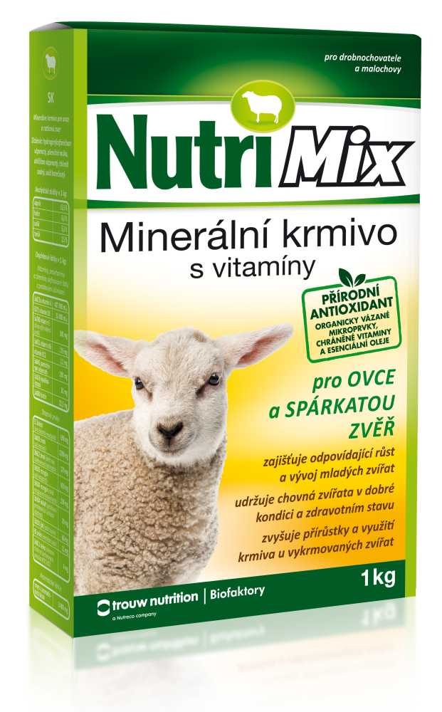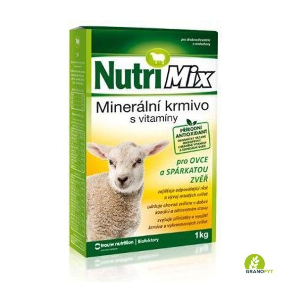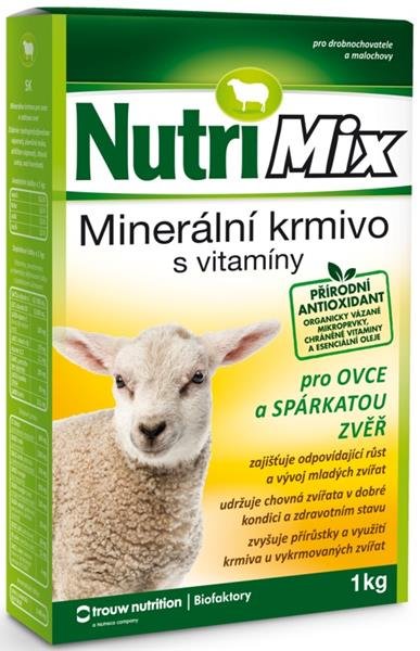 Krmný návod: NutriMix je určen na doplnění minerálních látek a potřebných vitaminů do krmných dávek pro ovce a spárkatou zvěř chovaných v drobnochovech, na farmách nebo oborách. Přispívá k udržení dobrého zdravotního stavu a životaschopnosti mláďat. Odměřené množství přípravku se rovnoměrně zamíchá do krmné dávky (jádra) nebo se rovnoměrně nasype na žlab na píci. Je určen ke každodennímu doplňování méně hodnotných krmiv. Na počátku odchovu a výkrmu je vhodné používat dolní hranici doporučeného dávkování a postupně zvyšovat podle rostoucí hmotnosti a stáří zvířat. Je nutné zajistit trvalý přístup k zdravotně nezávadné vodě.