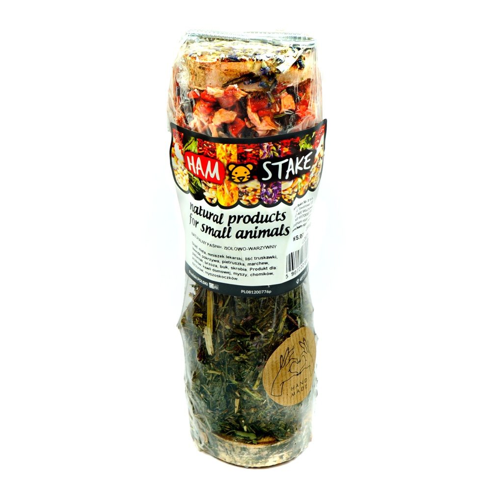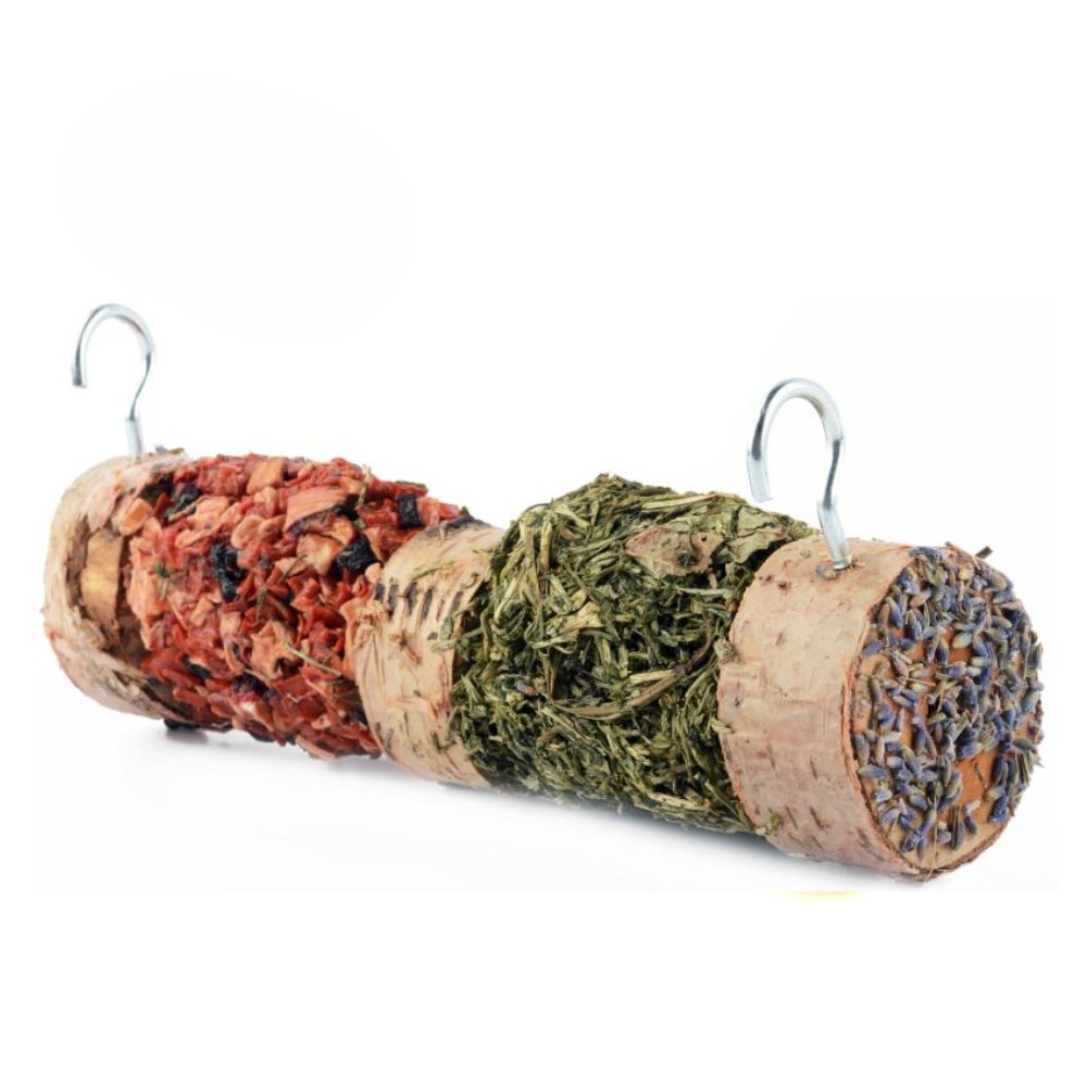 Směs chutné zeleniny a bylinek ve větvi z břízy podnítí vaše zvíře k aktivitě. Toto přírodní krmítko je vhodné zejména pro králíky, morčata, činčily, osmáky, ale také křečky, potkany, myši a další hlodavce.