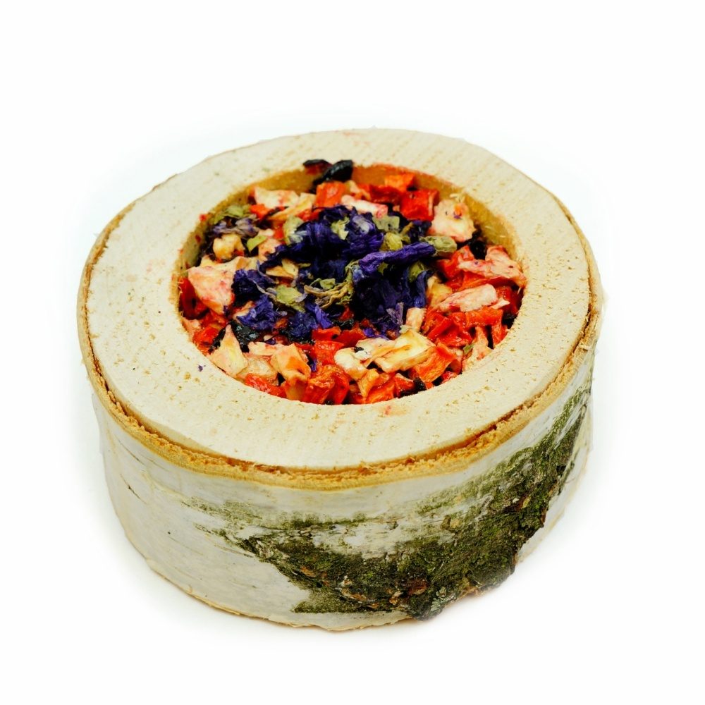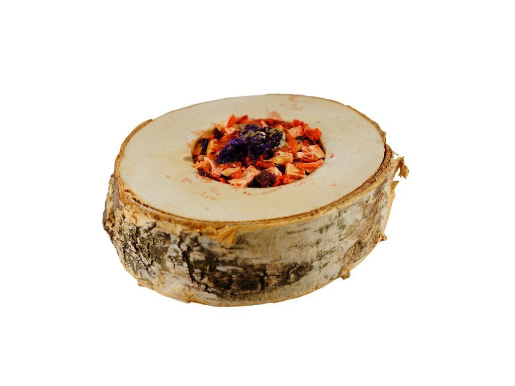 Směs chutné zeleniny v plátku z březového dřeva podnítí vaše zvíře k aktivitě. Tato „pizza“ se zeleninou je vhodná zejména pro králíky, morčata, činčily, osmáky, ale také křečky, potkany, myši a další hlodavce.
