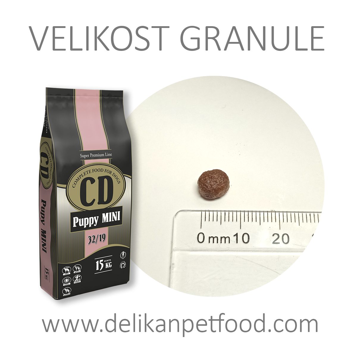 Suroviny a ostatní speciálně použité doplňky tohoto krmiva umožňují správný a zdravý odchov štěňat malých plemen psů nebo pro štěňata velkých plemen do cca 5 měsíců. Krmivo splňuje nejpřísnější kritéria nutriční a dietetické hodnoty. Taktéž forma a tvar granulí jsou speciálně upraveny pro malá plemena psů. Podíl bílkovin je zabezpečen především z látek živočišného původu (drůbeží maso a produkty z drůbeže). Nenasycené mastné kyseliny Omega 3 a Omega 6 jsou ve vyváženém poměru. Obsah makro i mikroprvků odpovídá potřebě rostoucího štěněte malého plemena. Vitaminy plně pokrývají jeho potřebu, navíc je vyšší podíl vitaminu C, který podporuje biosyntézu kolagenu potřebného pro zdravý růst i vývoj kostní a chrupavkové tkáně. Použitá probiotika optimálně osidlují střevní trakt žádoucí mléčnou mikroflórou a preventivně brání vzniku bakteriálních onemocnění. Napomáhají i k nejlepšímu využití všech živin a vitaminů. V krmivu jsou navíc protilátky IGY vázané na vaječnou hmotu, ty preventivně chrání rostoucí štěňata před řadou virových onemocnění (parvovirus, rota a corona virus) a dalšími potenciálně nebezpečnými bakteriemi.