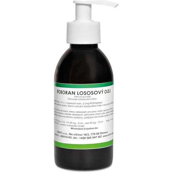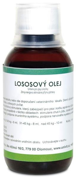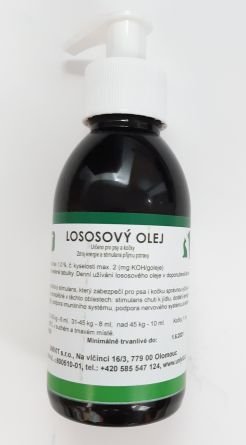 Lososový olej je přírodní produkt s přirozeně vysokým obsahem důležitých nenasycených mastných kyselin, které jsou pro zdraví zvířete nezbytné, avšak organizmus je nedokáže sám vyrobit.