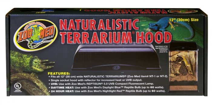 30cm/12″ kryt Naturalistic terárium obsahuje vstavěný reflektor a zásuvku pro výhřevné nebo UVB osvětlení.