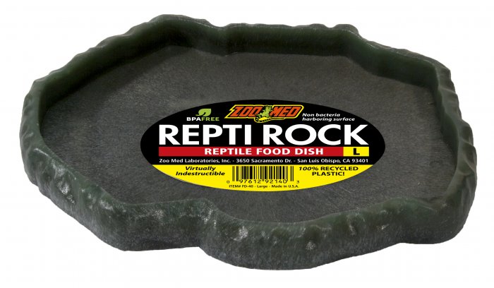 Terarijní miska Repti Rock. Miska s nízkým profilem, hladký povrch bez pórů, na kterém se nedrží bakterie. Dostupné v různých velikostech a barvách. Vyrobeno ze 100% recyklovaného plastu. Rozměry: 24.1 x 18.8 x 2 cm