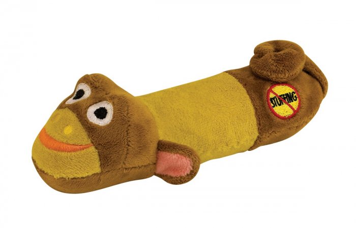 Plyšová pískací opička od značky Petstages neobsahuje žádnou výplň, která by mohla způsobit nepořádek. Hračka při skousnutí vydává dva různé zvuky, na každé straně jiný zvuk. Hračka dokonce dál píská, i když se jedna z vnitřních komor poškodí. Ply