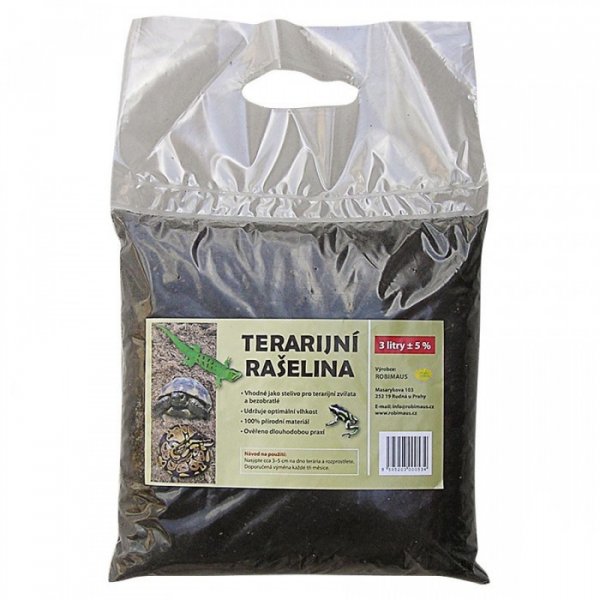 Terarijní rašelina výborně saje a drží vlhkost. Lze i míchat s jinými materiály (písek, lignocel, stromová kůra, kokosové chipsy). Rašelinu je nutné udržovat ve vlhkém stavu, jinak práší.