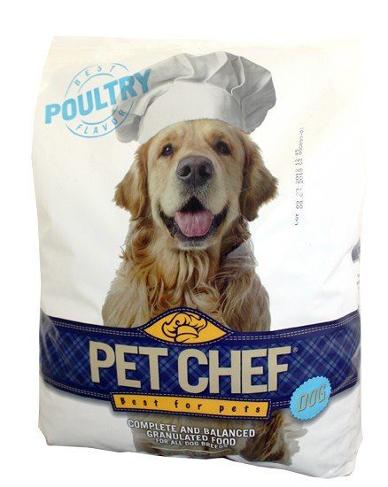 Krmivo PetChef dog drůbeží pro dospělé psy pro zdraví a dobrou fyzickou kondici. Granule obsahují drůbeží maso.