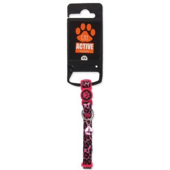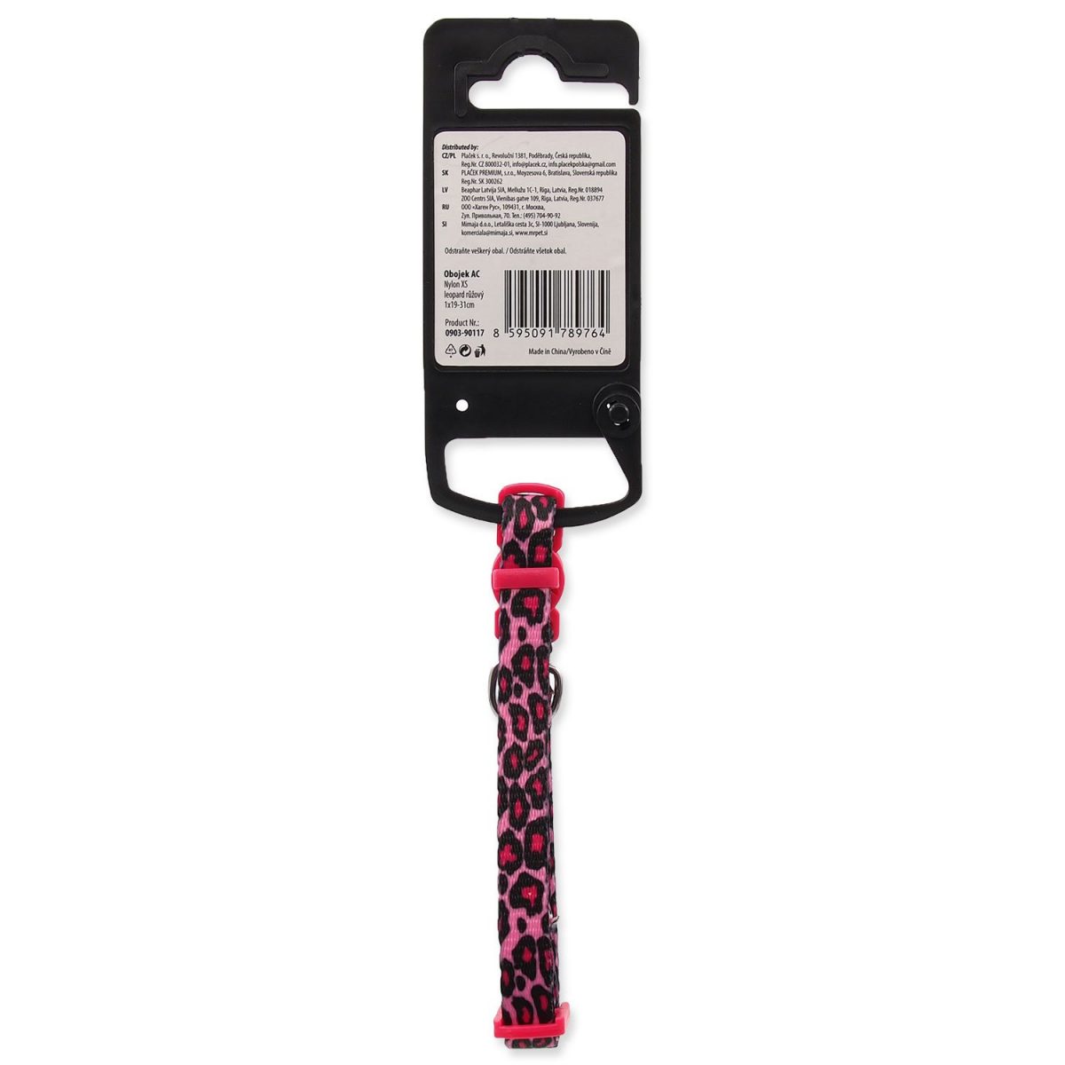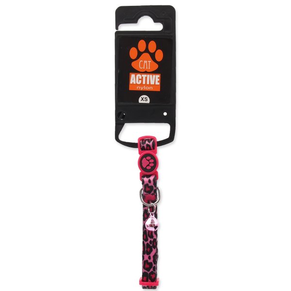 Nastavitelný nylonový obojek s leopardím potiskem a rolničkou.