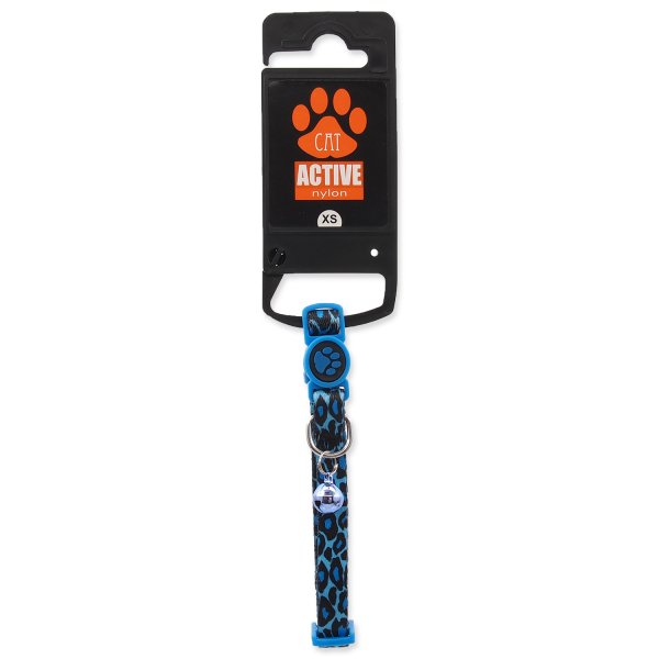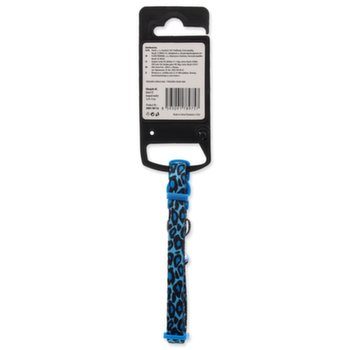 Nastavitelný nylonový obojek s leopardím potiskem a rolničkou.