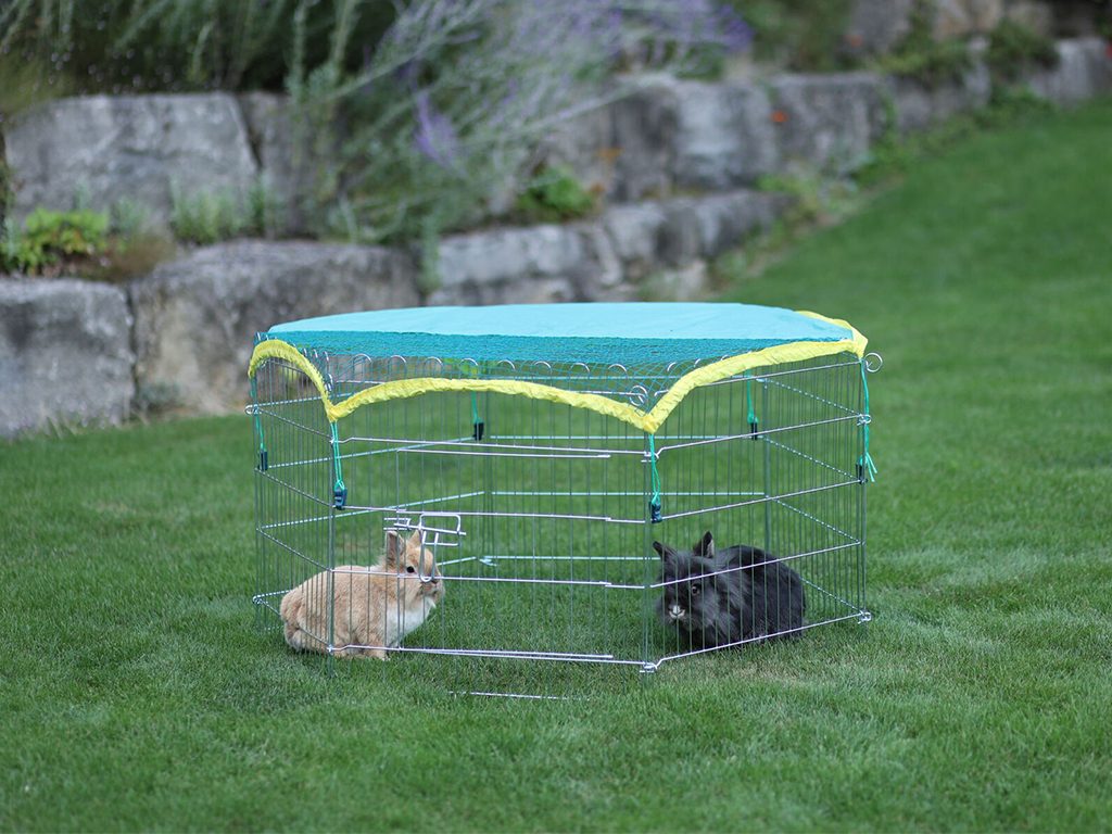 Malý šestistěnný výběh pro 1-2 zakrslé králíky. Vhodné jako ochrana hlodavců ve venkovním prostředí.