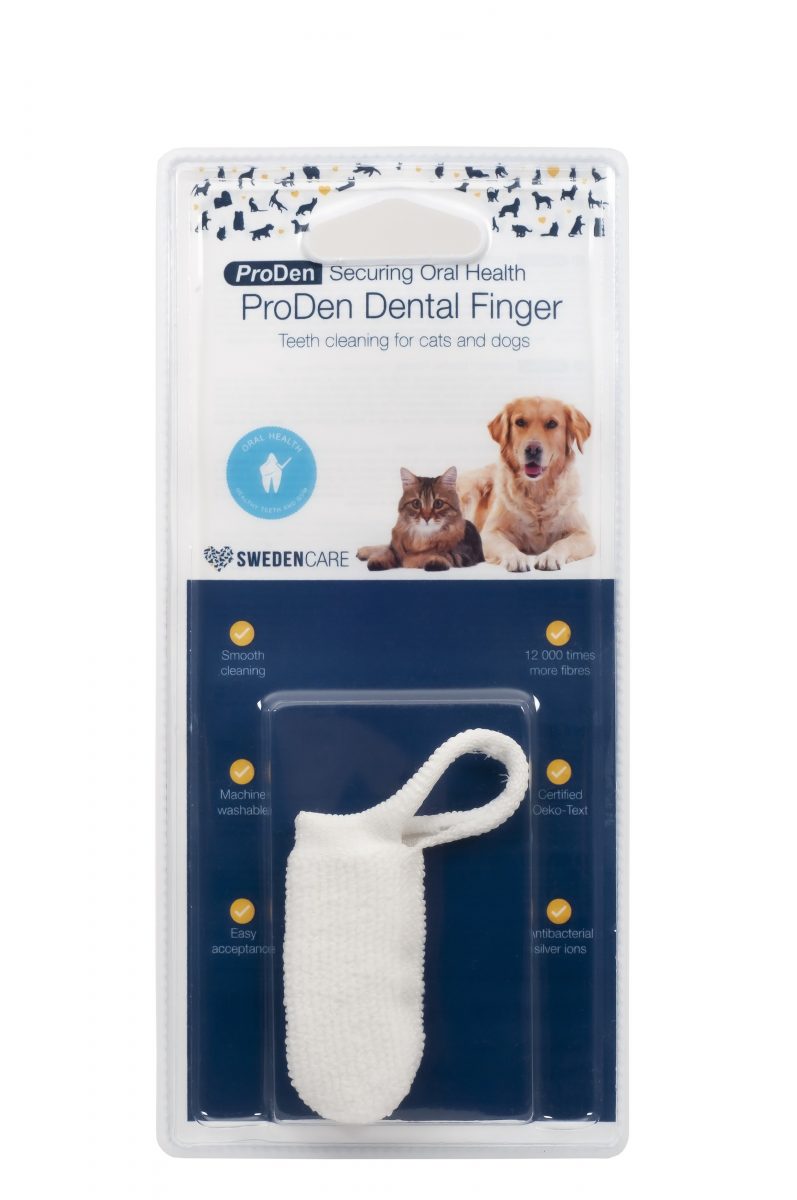 Umístěte kartáček na ukazováček a zajistěte smyčkou k prostřednímu prstu. Mírně navlhčete vodou a jemně očistěte zuby kočky nebo psa. Po použití opláchněte teplou vodou.