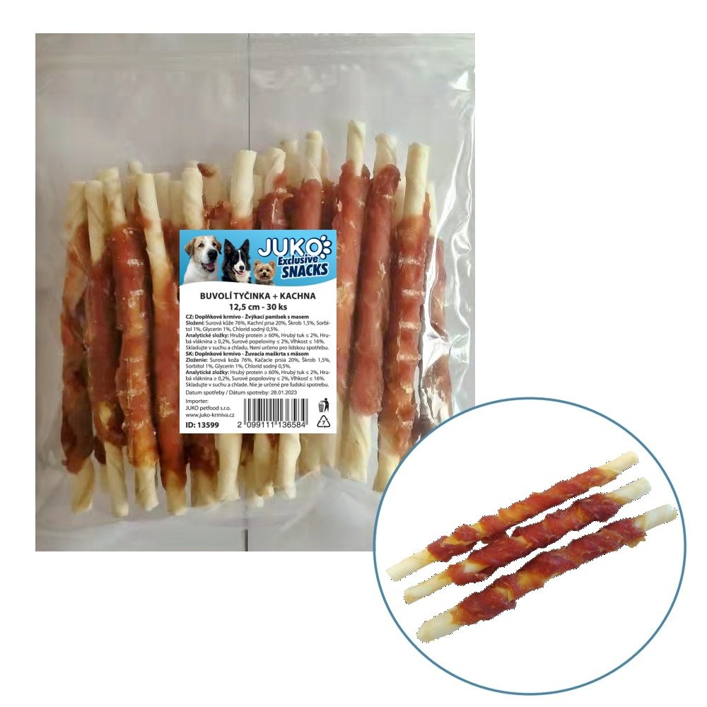 Skvělá pochoutka ve tvaru tyčinky, která uspokojuje přirozenou touhu a potřebu žvýkat. Tyče jsou z tvrdé bůvolí kůže, což při žvýkání napomáhá udržovat zuby silné a zdravé. Delikatesní chuť zajistí sušené kachní maso.
