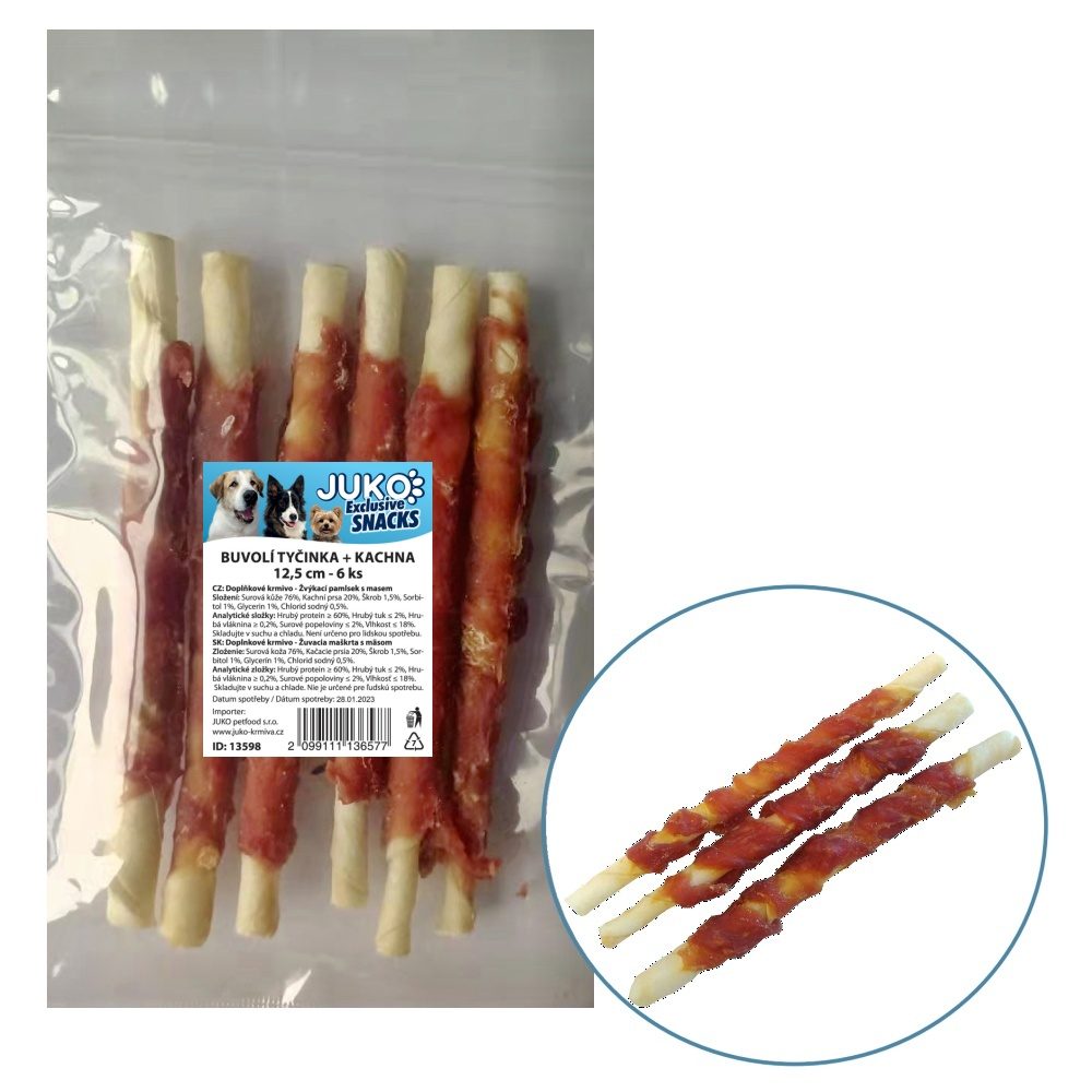 Skvělá pochoutka ve tvaru tyčinky, která uspokojuje přirozenou touhu a potřebu žvýkat. Tyče jsou z tvrdé bůvolí kůže, což při žvýkání napomáhá udržovat zuby silné a zdravé. Delikatesní chuť zajistí sušené kachní maso.