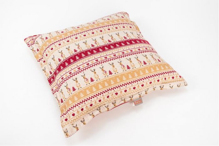 Praktický oválný polštář se dá využít samostatně jako pelech nebo jako polštář do plastového či proutěného pelíšku. Prošití zabraňuje nerovnoměrnému rozmístění výplně a změně tvaru po jeho vyprání. Polštář je oboustranný. Pevný materiál a kvalitní výplň je zárukou, že polštář bude dlouho sloužit. Polštář zdobí krásný potisk – vánoční sobi.