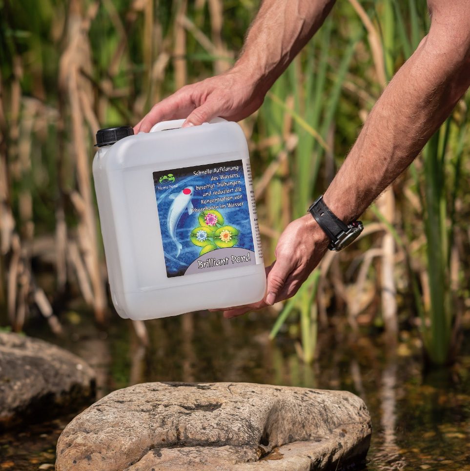 Po aplikaci Brilliant Pond do jezírka vznikají shluky bílých obláčků, čímž na sebe vážou nečistoty. Shluky s nečistotami klesají ke dnu, nebo se tvoří na hladině. Je proto dobré tyto shluky z jezírka dostat pryč, například pomocí síťky.
