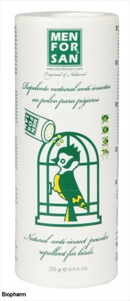 Práškový repelent chránící ptáky před všemi druhy hmyzu (roztoči, atd.) s výtažkem z nimbového oleje, který působí jako přírodní insekticid, a to bez nežádoucích vedlejších účinků. Obsahuje dezodorační látky, které eliminují pachy.