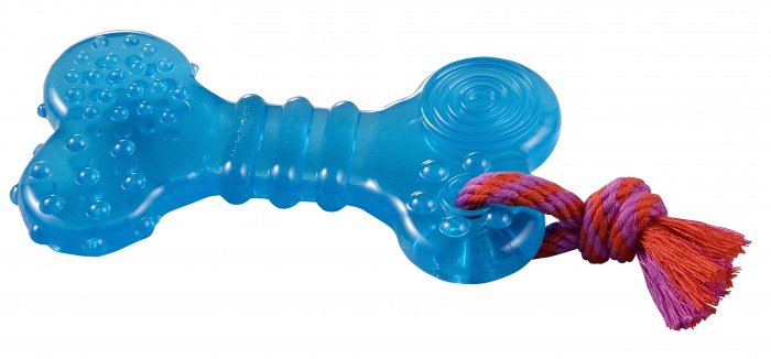 Tato zábavná žvýkací hračka má perfektní tvar pro snadné žvýkání, přenášení a společnou hru. Je vyrobena z odolného materiálu a má pevnou konstrukci pro delší trvanlivost. Její plochý tvar napomáhá procvičování žvýkacích svalů. Navázané lano navíc při hře pomáhá snižovat tvorbu zubního kamene a díky textuře na kosti si při hře pejsek masíruje dásně.